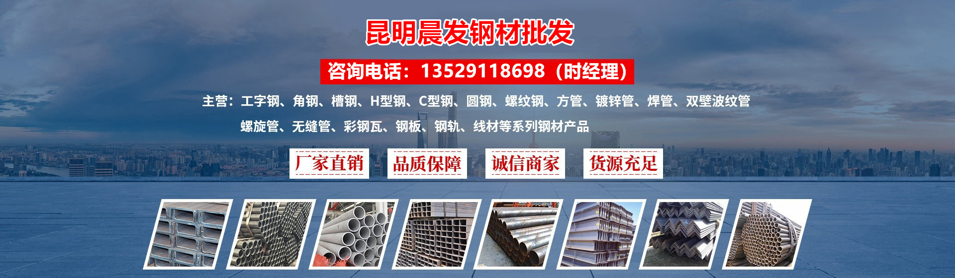 昆明經(jīng)濟(jì)技術(shù)開發(fā)區(qū)晨發(fā)建材經(jīng)營部座落于美麗的春城,我公司是一家集鋼材批發(fā),非標(biāo)件訂做加工,配送,物流,倉儲為一體的綜合貿(mào)易企業(yè)。公司立足鋼材貿(mào)易這一主業(yè),公司主要經(jīng)營各種規(guī)格:H型鋼、工字鋼、槽鋼、鋼板,方管,螺旋管,鍍鋅管,無縫管,圓鋼,C型鋼,彩瓦,鋼軌,角鋼,螺紋鋼,線材等系列產(chǎn)品的鋼材,憑著“團(tuán)結(jié)、務(wù)實(shí)、敬業(yè)、奉獻(xiàn)“的企業(yè)精神,經(jīng)過全體員工的努力拼搏和積極開拓,公司已成為年銷量達(dá)15萬噸以上的鋼材營銷企業(yè),日均常備庫存2萬噸以上,在云南市場享有較高信譽(yù)。本公司奉行 ;誠信經(jīng)營,共創(chuàng)輝煌的經(jīng)營理念;贏得了各大鋼廠和廣大客商的贊譽(yù),使公司業(yè)務(wù)越辦越穩(wěn)固。并先后為西南地區(qū)及越南,老撾,泰國,緬甸等大型電站,礦山,橋梁,市政設(shè)施等重點(diǎn)工程供應(yīng)了大量優(yōu)質(zhì)鋼材。